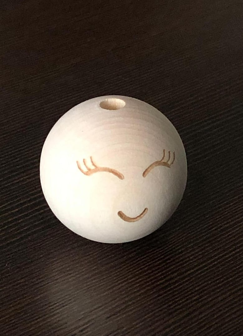 - W zestawie: 1 sztuka koralika kulki drewnianego z wygrawerowaną buzią i oczami