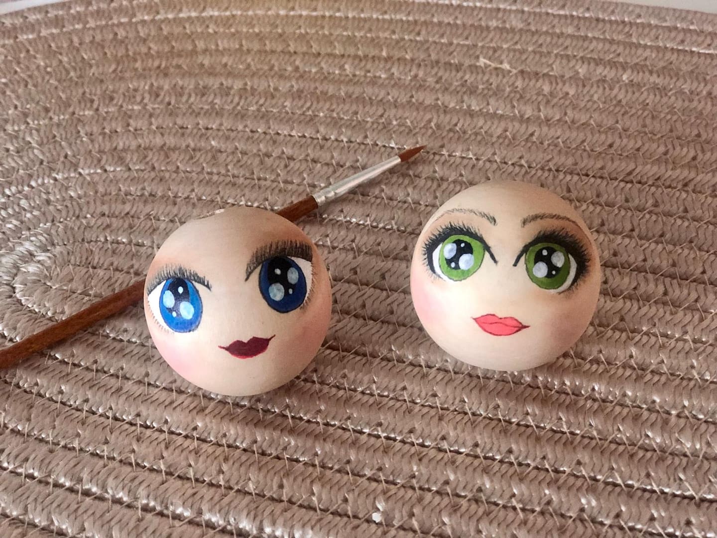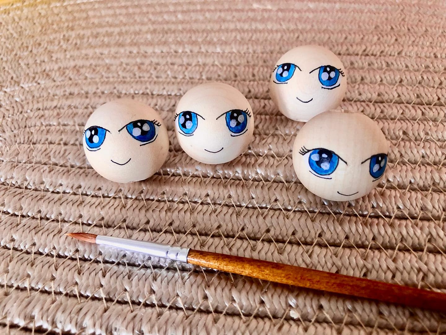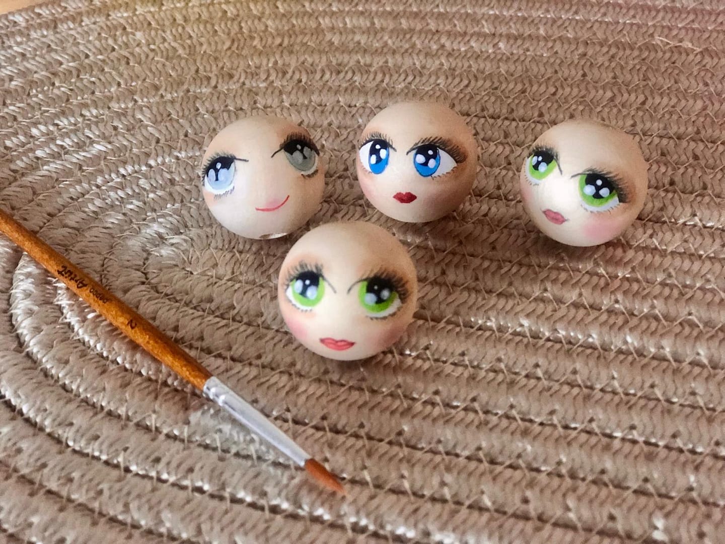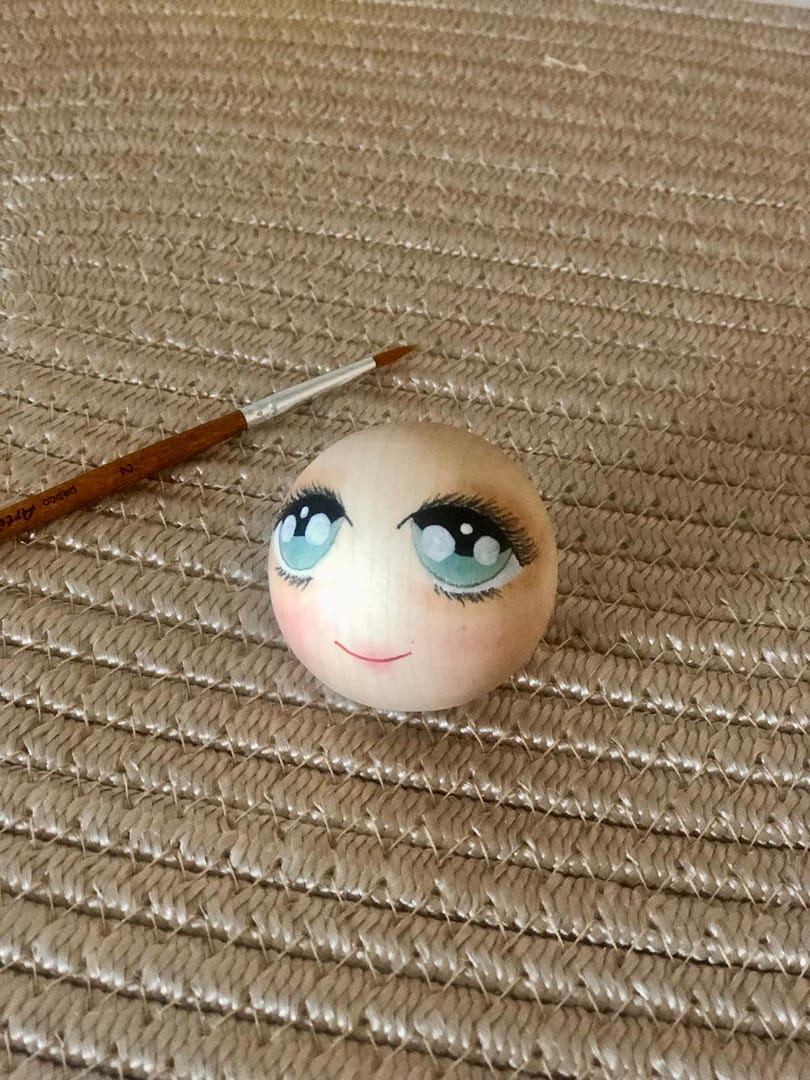 Drewniany malowany koralik do laleczek z otwartymi oczami i ustami – średnica 25 mm
